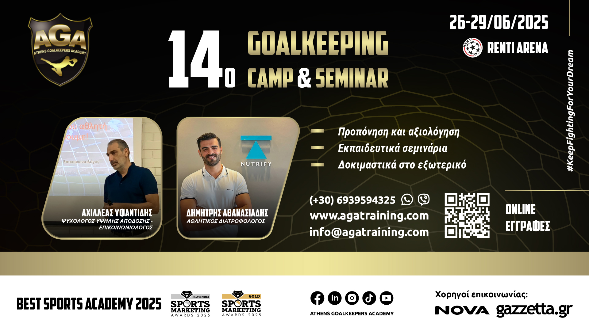 Μέχρι την Παρασκευή 10 Ιουνίου θα έχουν δικαίωμα να εγγραφούν στο κορυφαίο ετήσιο Camp για τερματοφύλακες και προπονητές τερματοφυλάκων στην Ελλάδα όσοι δεν πρόλαβαν.
